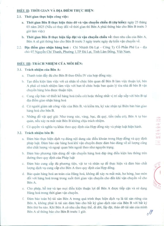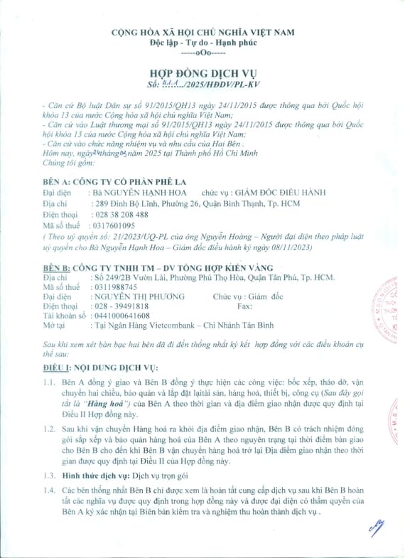 - Hợp đồng vận chuyển cho Phê La Bình Thạnh