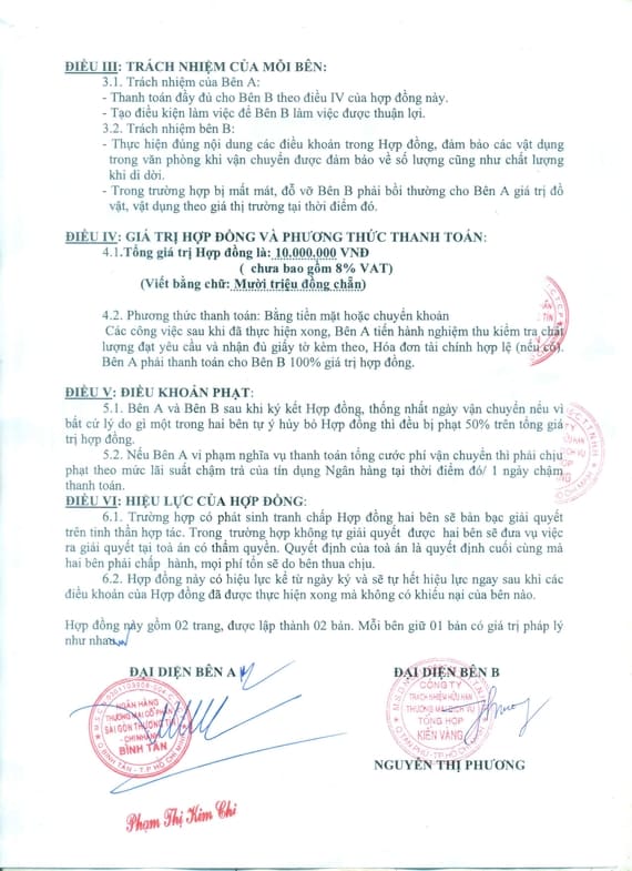 Hợp đồng vận chuyển cho Ngân Hàng Sacombank Tân Phú