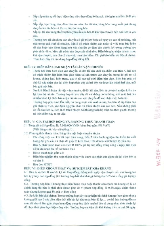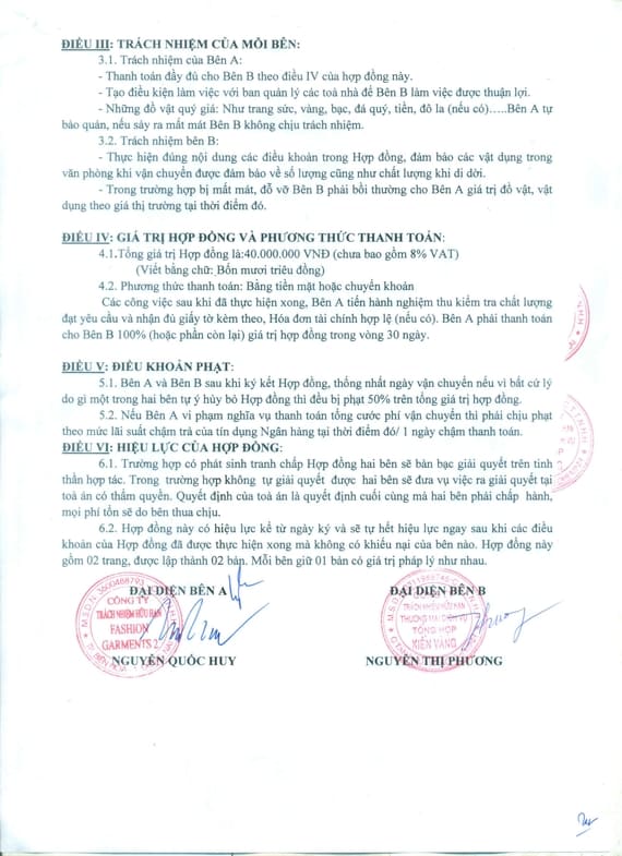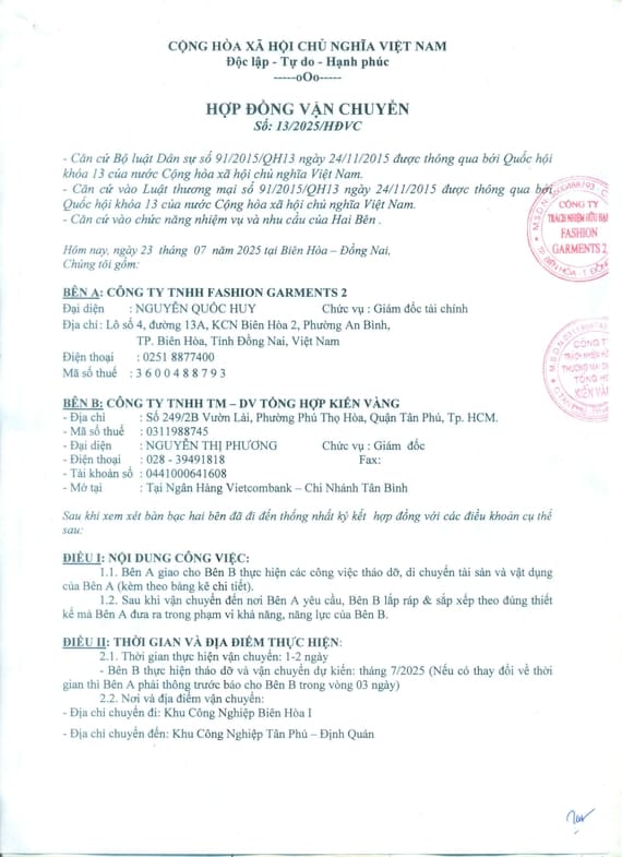 - Hợp đồng vận chuyển cho Công Ty Fashion Garment 2