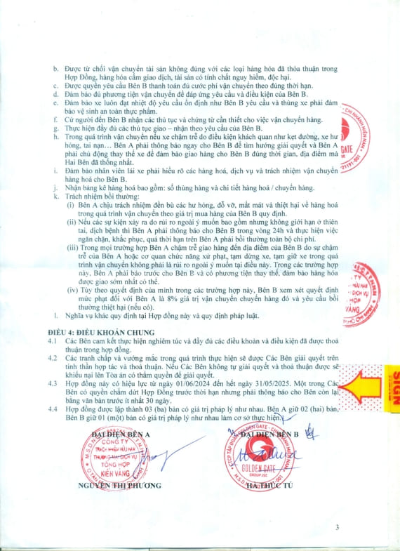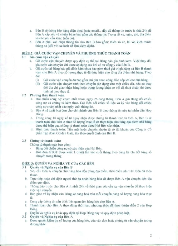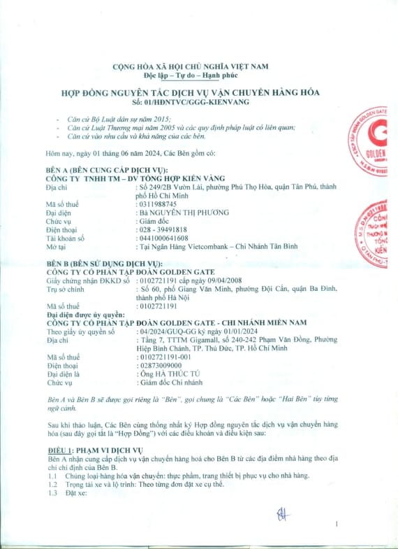 - Hợp đồng vận chuyển cho Tập Đoàn Golden Gate