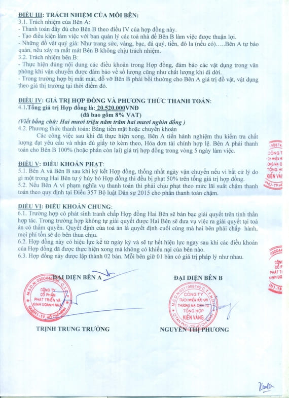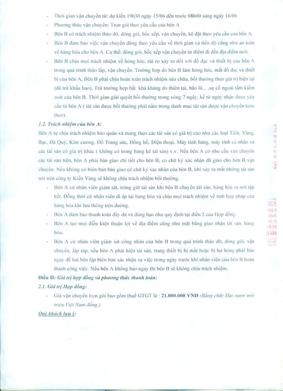 - Hợp đồng vận chuyển cho Công Ty Phát Triển Và Kinh Doanh Nhà