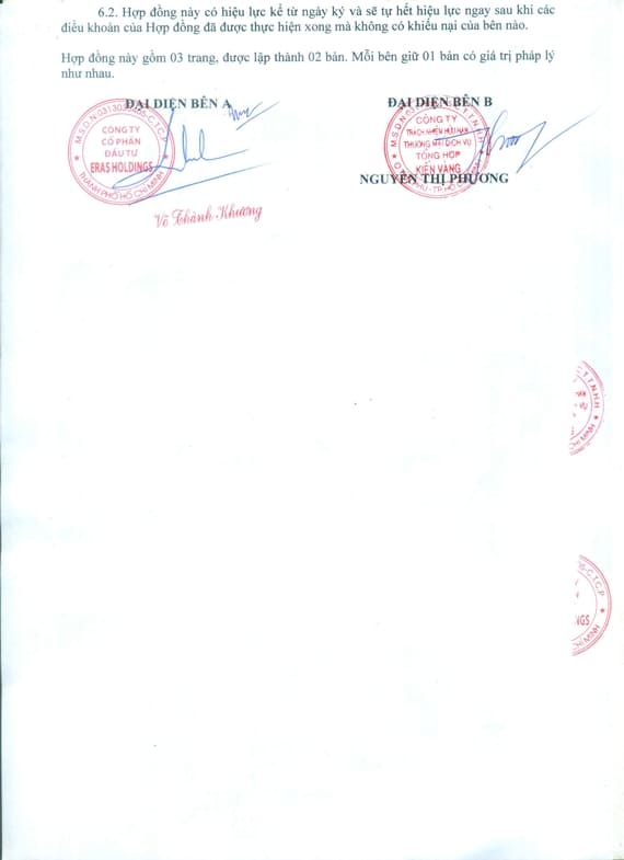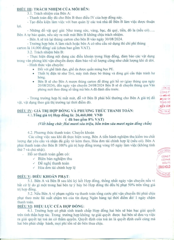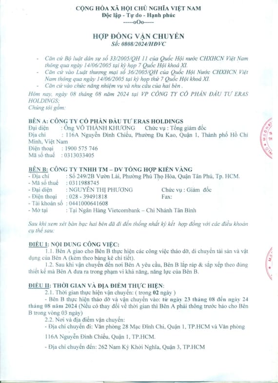 - Hợp đồng vận chuyển cho Công Ty Eras Holdings