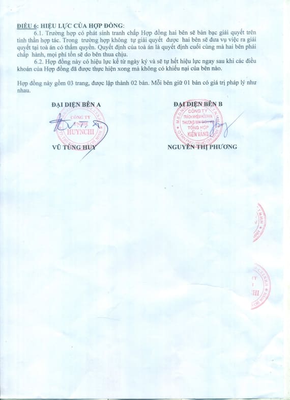 - Hợp đồng vận chuyển cho Công Ty Huynchi