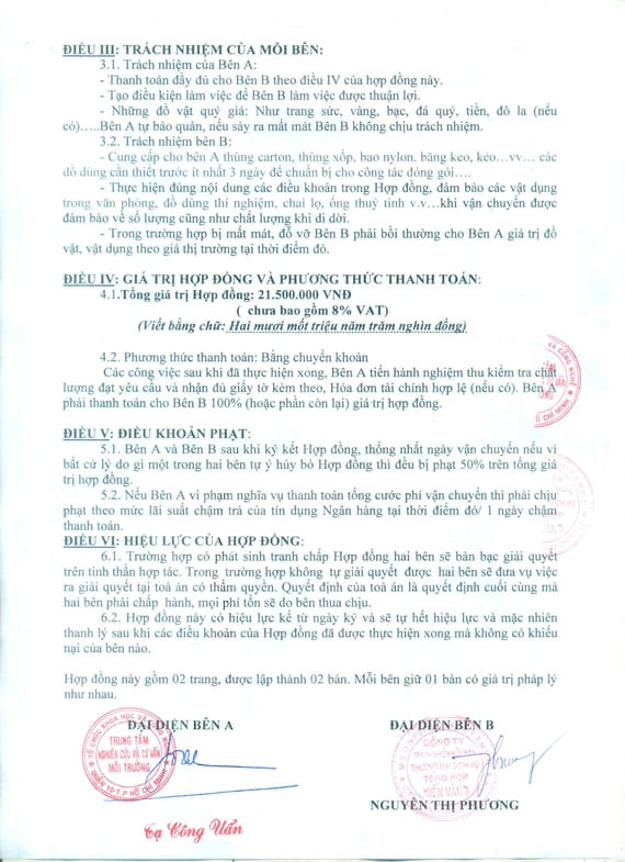 - Hợp đồng vận chuyển cho Trung Tâm Nghiên Cứu Và Tư Vấn Môi Trường